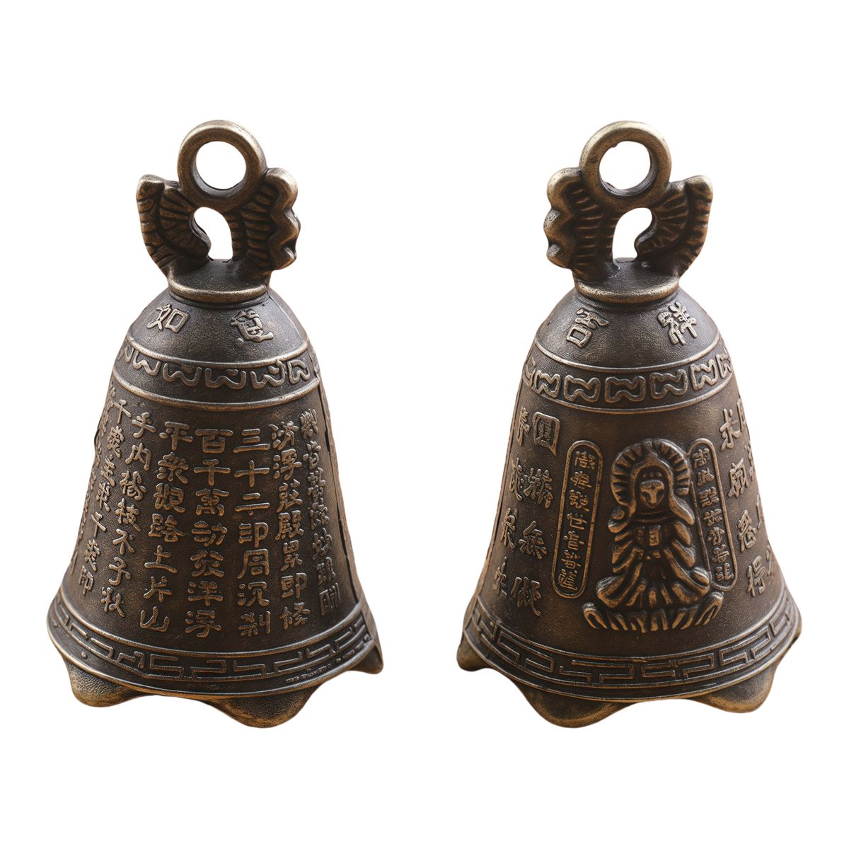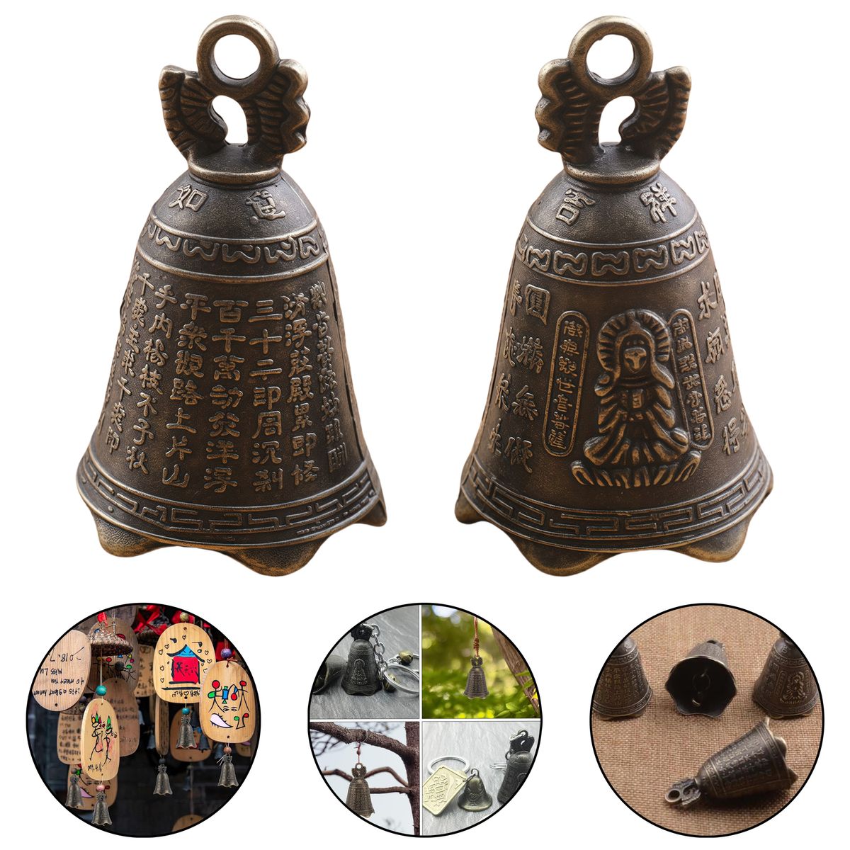 This antique bronze bell pendant features a compact design (0.94\"x0.94\"x1.5\") with exquisite vintage styling. The miniature hanging ornament doubles as a charming keychain decoration or bag accessory. Lightweight and portable, it offers comfortable handling with its smooth metallic finish. Perfect for adding rustic elegance to gifts, home decor, or personal items. The classic bell shape produces gentle chimes while maintaining durable construction. Ideal for bohemian, ethnic, or vintage-themed styling needs.