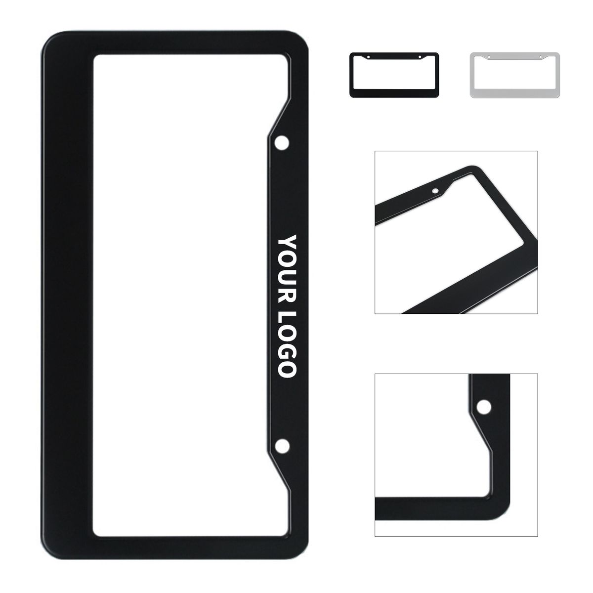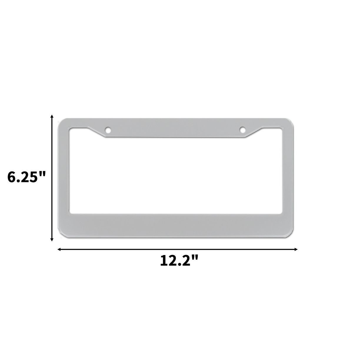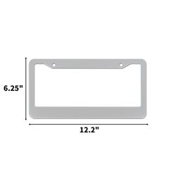 This frame is crafted from stainless steel for long lasting durability and corrosion resistance. Designed with multiple hole arrangements, it fits most standard United States plates while offering a sleek metallic look. The rigid build ensures stability through seasonal conditions, making it suitable for use across different vehicles. Measuring 12.2" long and 6.25" wide, the wide imprint space allows clear branding through screen printing for promotional campaigns or dealership giveaways.