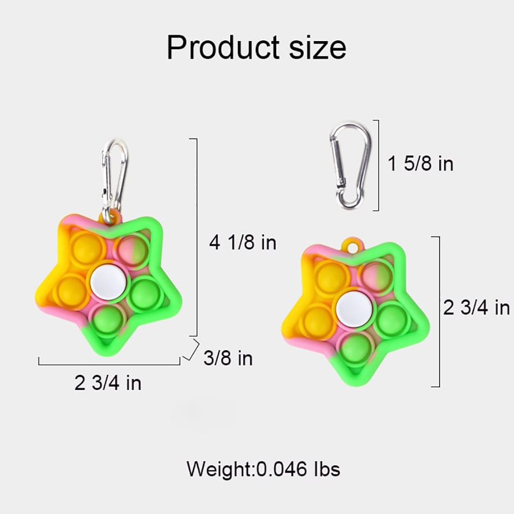 - 3-in-1 design combines push pop bubble sensory toy, fidget spinner, and star keychain, making it an upgraded version of traditional push pop fidget toys.